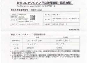 夫婦とも川原医院にて接種。